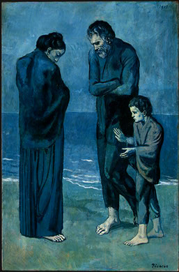 Shortly after moving to Paris from Barcelona, Picasso began to produce works that were suffused in blue. This particular pigment is effective in conveying a sombre tone. The psychological trigger for these depressing paintings was the suicide of Picasso''''s friend Casagemas. The Blue Period work is quite sentimental, but we must keep in mind that Picasso was still in his late teens, away from home for the first time, and living in very poor conditions.