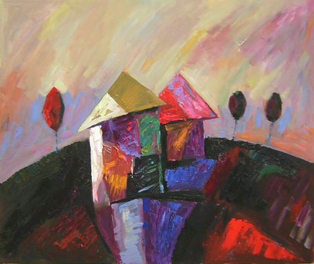 Chinese Oil Paintings For Wholesale - Catalog - Landscape - House on the hill[HS0416] |