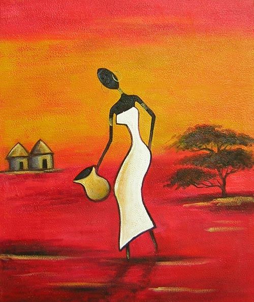 Chinese Oil Paintings For Wholesale - Catalog - African - Getting Water[HS1431] |