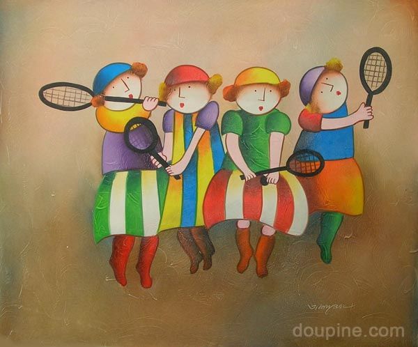 Chinese Oil Paintings For Wholesale - Catalog - Happy Kids - Badminton team[HS2930] |