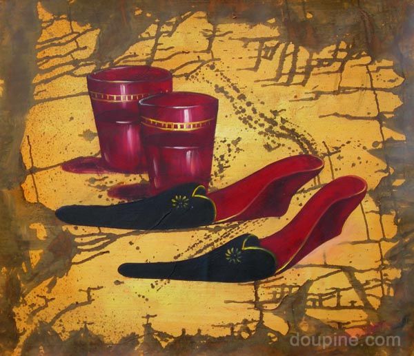 Chinese Oil Paintings For Wholesale - Catalog - Still life - High-heel Shoe and Wine[HS3611] |