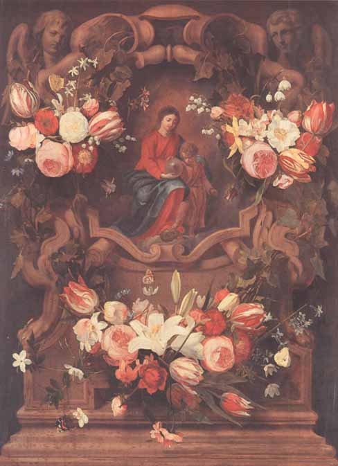 dp1743 Madonna in Floral Wreath, c. 1620, by Peter Paul Rubens