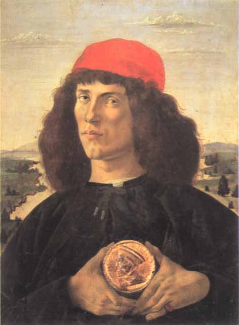 dp1574 Young Man with a Medallion of Cosimo de Medici, c. 1474, by Sandro Botticelli