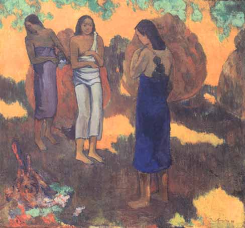 | dp1328 | Three Tahitian Women against a Yellow Background, 1899, by Paul Gauguin |