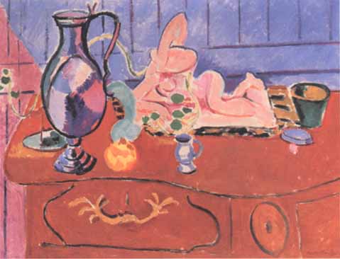 | dp1468 | Pink Statuette and Pitcher on a Red Chest of Drawers, 1910, by Henri Matisse |